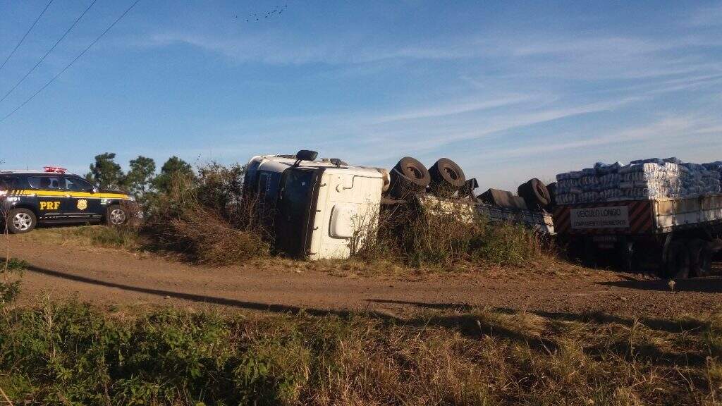O veículo estava se deslocando de Itaqui em direção a São Borja carregado com 50 toneladas de arroz, quando após percorrer cerca de 40 quilômetros cruzou a pista em uma reta e saindo da rodovia pela contramão de direção e tombando em um barranco.