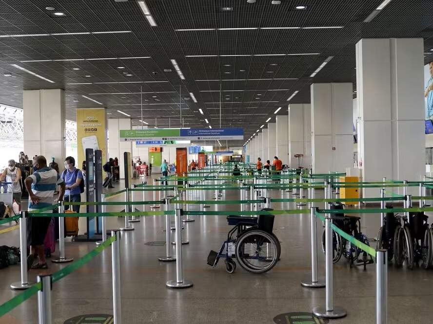 A Polícia Federal disse que foi acionada na tarde de domingo, após duas passageiras, durante o procedimento de check-in, afirmarem que portavam uma bomba em suas bolsas. “Imediatamente, foi realizada a verificação por raio-X e inspeção manual das bagagens, sendo constatado que não havia qualquer artefato explosivo”, disse a PF. A declaração, feita no guichê da Azul Linhas Aéreas, mobilizou agentes da Polícia Federal e interrompeu temporariamente o atendimento.