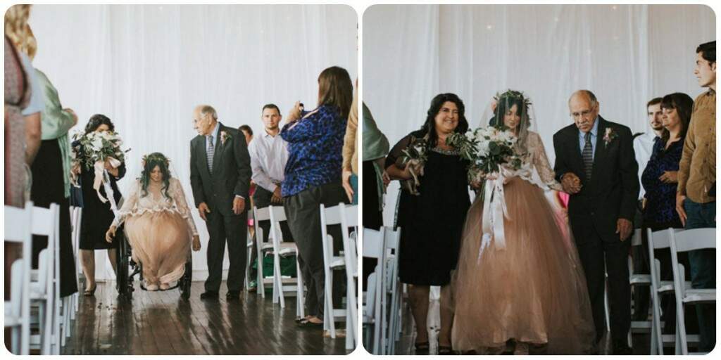 Mas um ano antes de seu casamento, ela propôs um objetivo para si mesma: conseguir ficar de pé e andar na cerimônia ao longo dos 45 minutos do evento e também fez questão de ficar em pé durante a maioria da recepção. As fotos do casamento mostram que o objetivo foi alcançado com sucesso.
