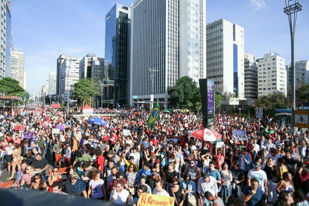 Milhares de pessoas se juntaram a um protesto, na avenida Paulista, convocado nas redes sociais contra presidente interino Michel Temer. Intitulado “Mulheres contra Temer”, o ato também reuniu representantes do movimento negro, de grupos LGBT e de movimentos estudantis.