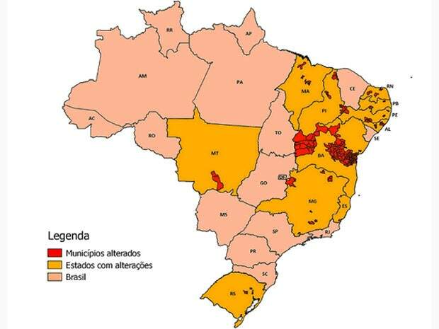 O IBGE (Instituto Brasileiro de Geografia e Estatística) divulgou nesta sexta-feira (26) novos mapas de limites territoriais dos municípios do País. Ao todo, 206 cidades de 11 Estados tiveram seus limites alterados. As mudanças ocorrem na Bahia, Piauí, Alagoas, Minas Gerais, Pernambuco, Maranhão, Rio Grande do Sul, Rio Grande do Norte, Espírito Santo, Mato Grosso e Paraíba. A Bahia é o Estado que concentra mais mudanças: 113 cidades alteradas.