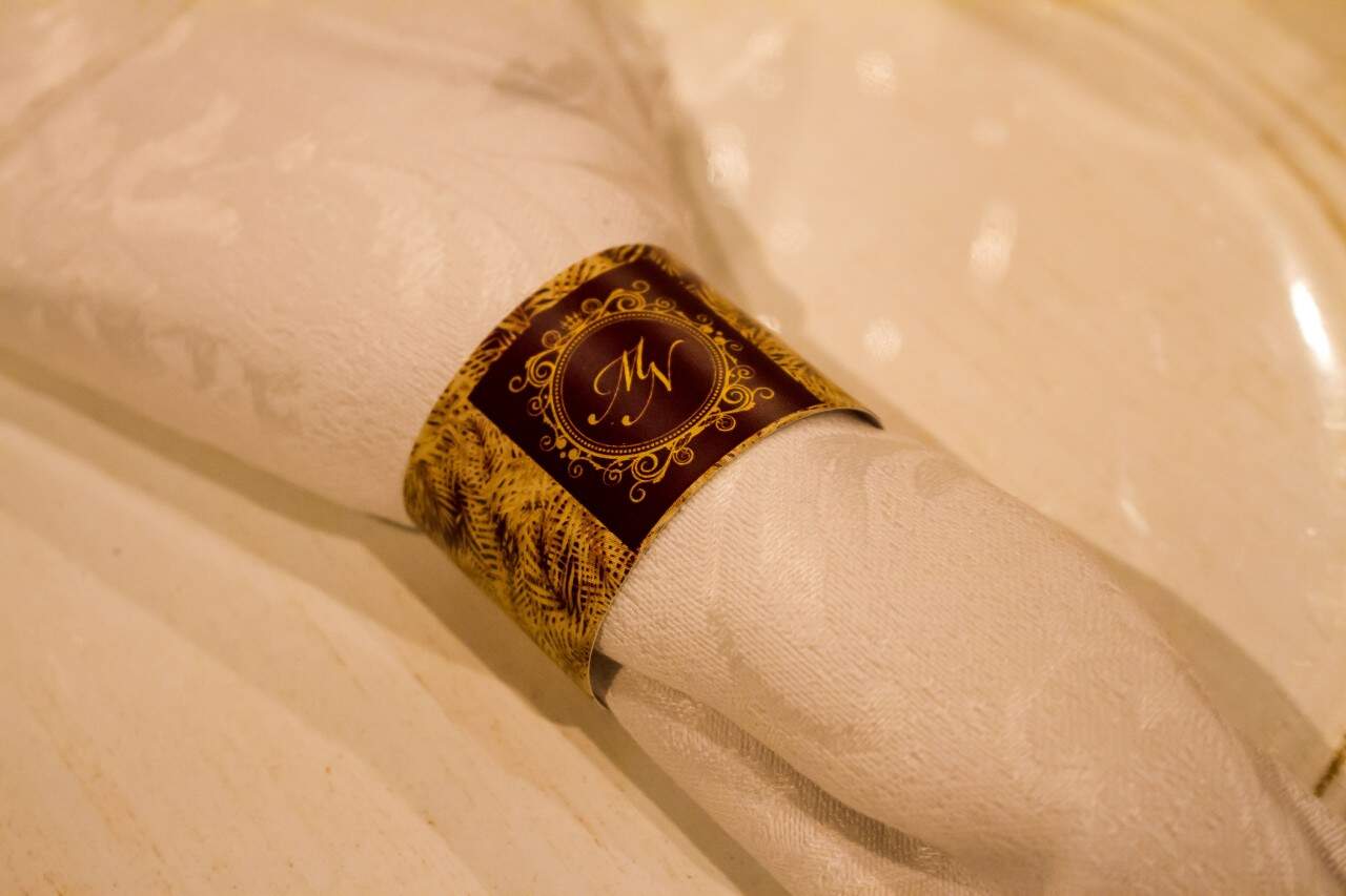 O detalhe dos guardanapos envolvidos com elo portando as iniciais dos noivos. (Foto: Pedro Antonio Heinrich/especial)