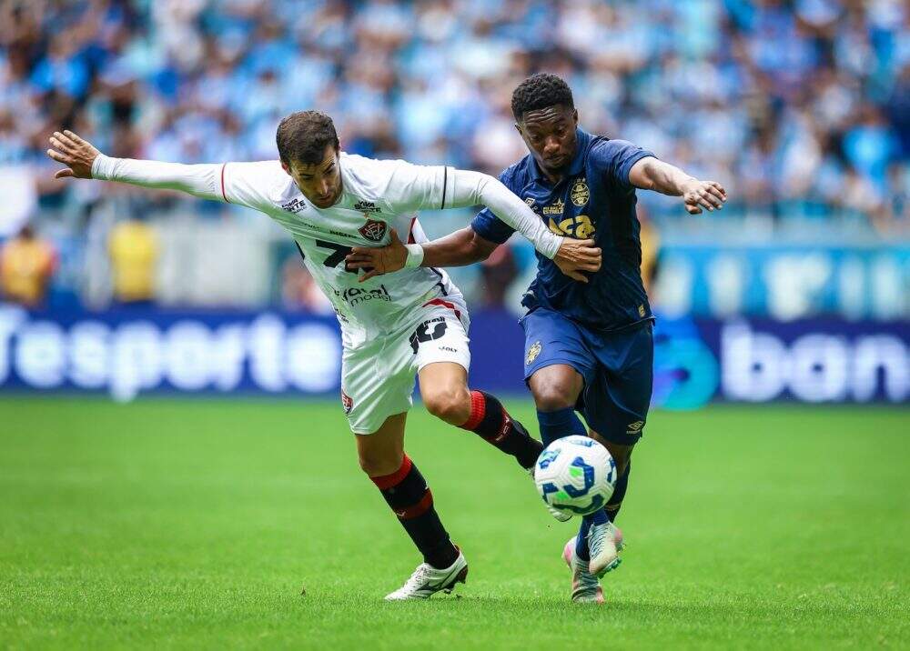 Os 15 minutos iniciais na Arena contaram com estudo por parte do Grêmio. Enquanto isso, o Vitória já sabia bem o que iria fazer: explorar bolas longas. Não à toa, criou as duas melhores chances nesse período inicial.