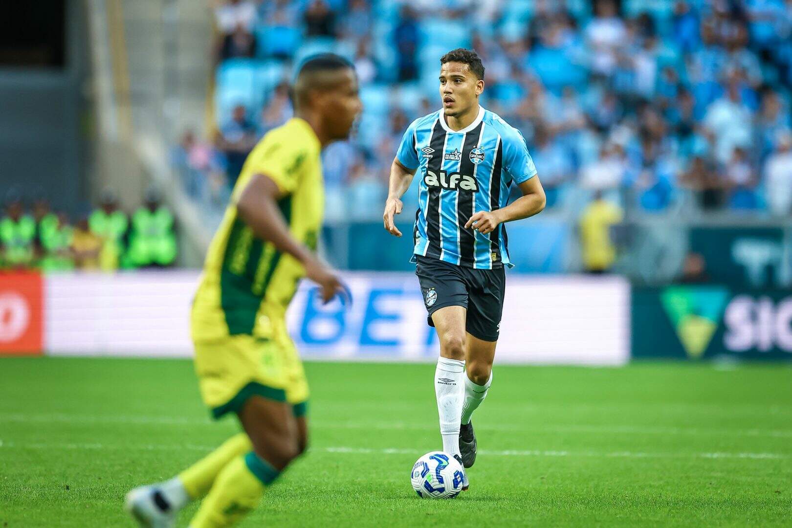 Apesar do apoio em casa, o Grêmio fez um primeiro tempo abaixo do esperado. O Mirassol controlou as principais ações ofensivas e criou chances claras, com José Aldo e Alesson, que pararam em boas defesas de Volpi. No entanto, na sequência de um escanteio, João Victor acertou a trave e, no rebote, Alesson empurrou para as redes.