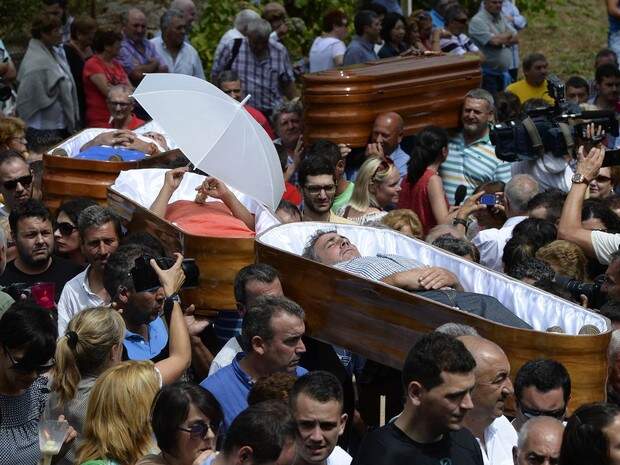 Fiéis de Santa Marta participaram da tradicional Procissão das Mortalhas, na Espanha, na qual agradecem por terem tido suas vidas salvas carregando caixões vazios ou deitando dentro deles e sendo carregados por parentes.