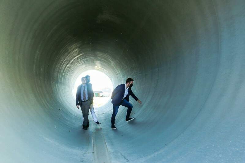 O responsável pelo programa Hyperloop, Alexandre Zisa, detalhou o funcionamento da tecnologia à comitiva. Para que o transporte via cápsula funcione, todo o ar é retirado de dentro de um tubo de 20 quilômetros. “A ausência de ar remove o atrito e diminui o gasto de energia, o que possibilita o deslocamento em alta velocidade. É o único meio de transporte dentro de um ambiente controlado, altamente seguro para humanos e para o meio ambiente”, explicou.
