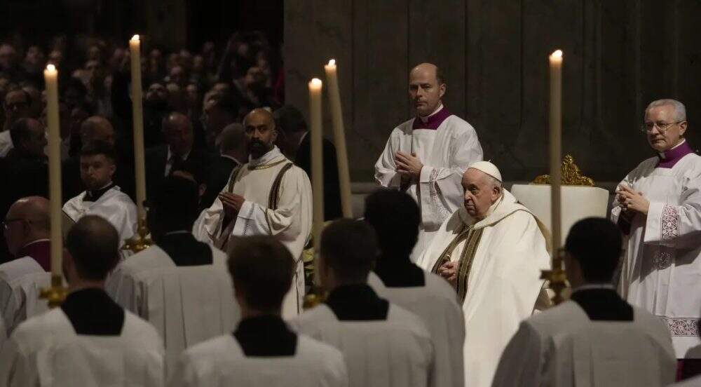 O papa, que repetidamente pediu um cessar-fogo na guerra Israel-Hamas, enfatizou esta noite que o nascimento de Jesus ofereceu um forte contraste com o “poder do mundo” e o desejo de “poder, fama e glória”.