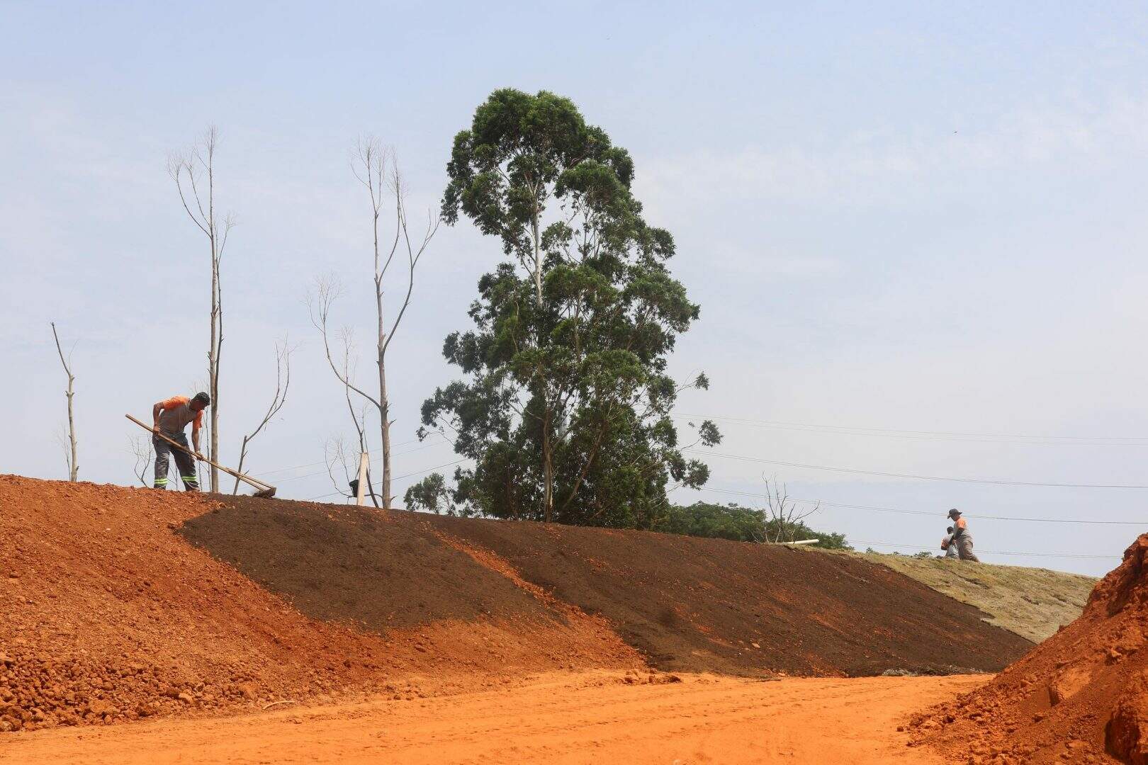 Esse serviço é realizado por meio da compactação sucessiva de camadas de argila e, conforme os técnicos responsáveos, já se encontra em seus últimos metros, no ponto mais próximo ao que apresentou rompimento durante a enchente histórica de maio de 2024 – contribuindo para a agravar os alagamentos.