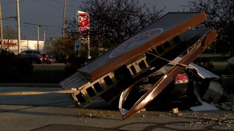 Placa de outdoor cai em cima de um carro, mas o motorista sobrevive