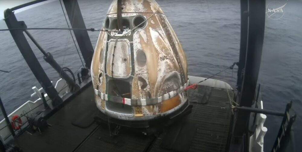 A bordo estavam Anne McClain e Nichole Ayers, da Nasa, Takuya Onishi, da Agência Japonesa de Exploração Aeroespacial (Jaxa), e Kirill Peskov, da agência espacial russa Roscosmos. A equipe passou 148 dias fora do planeta.