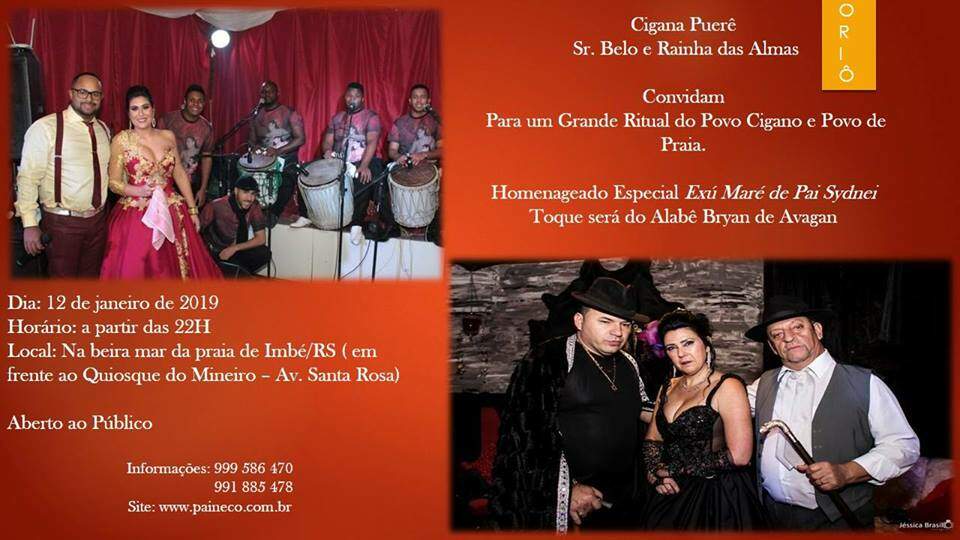 Neste próximo sábado (12) tem show cigano à beira-mar de Imbé. O “Grande Rital Povo Cigano e Povo de Praia” presta uma homenagem especial ao Exú Maré de Pai Sydnei, com Toque do Alabê Bryan de Avagan. A cerimônia, aberta ao público, acontece a partir das 22h em frente ao Quiosque do Mineiro, na Avenida Santa Rosa, em Imbém, Litoral Norte gaúcho.