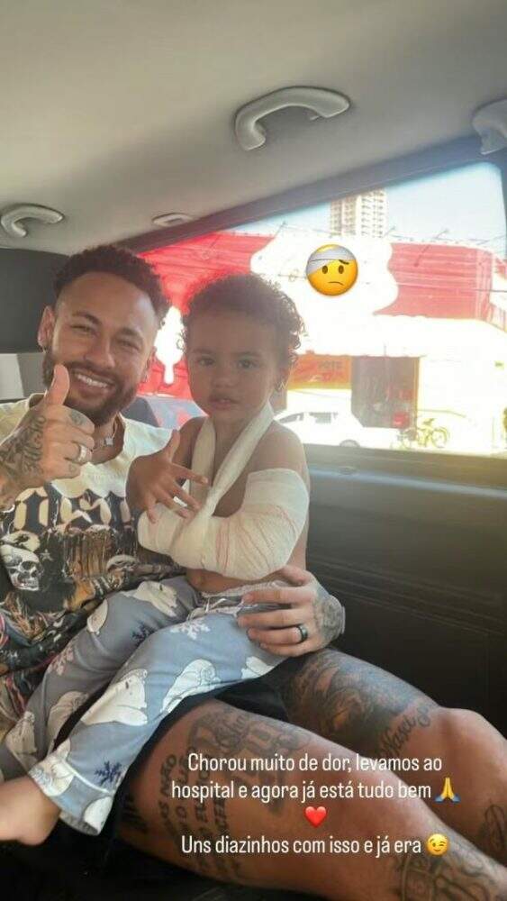 Neymar compartilhou em suas redes sociais, nesse domingo (5), uma foto ao lado de Mavie, que aparece com o braço engessado. Sem especificar o que aconteceu, ele tranquilizou os seguidores e garantiu que está tudo bem com a filha.