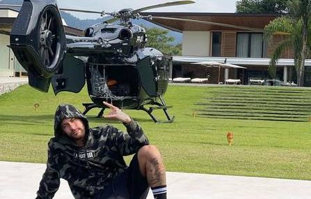Nesta quarta-feira, ele publicou uma foto na frente da mansão e mostrando o helicóptero que tem com suas iniciais e que custa cerca de R$ 15 milhões.