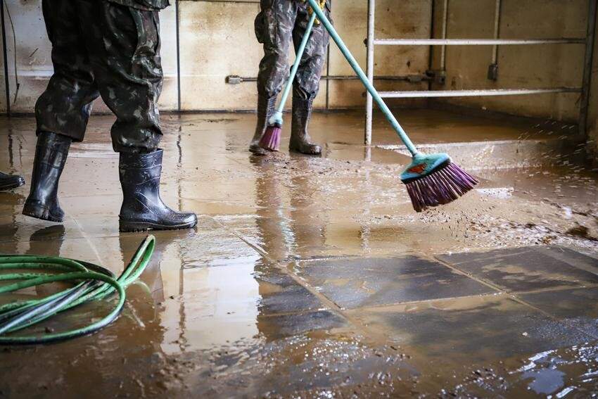Com o recuo, muito barro ficou acumulado nos estabelecimentos e residências.