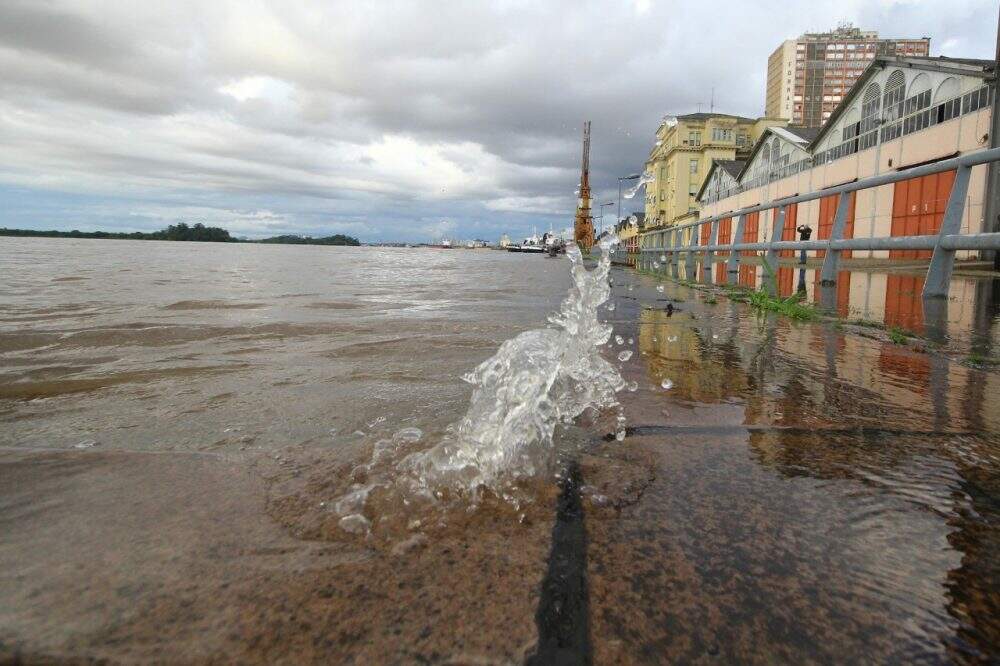 Após a tempestade que atingiu Porto Alegre desde a noite de quarta-feira (14), quando foram registradas rajadas de vento de mais de 100 quilômetros por hora, o nível do Guaíba voltou a subir. Neste sábado (17), por volta das 11h30min, o nível registrou no Cais Mauá 2,93 metros, a maior marca histórica em 74 anos, segundo o Ceic (Centro Integrado de Comando), de Porto Alegre. O alagamento provocado pela cheia do Guaíba já alcança as comportas do muro do sistema de proteção do local nesta manhã.