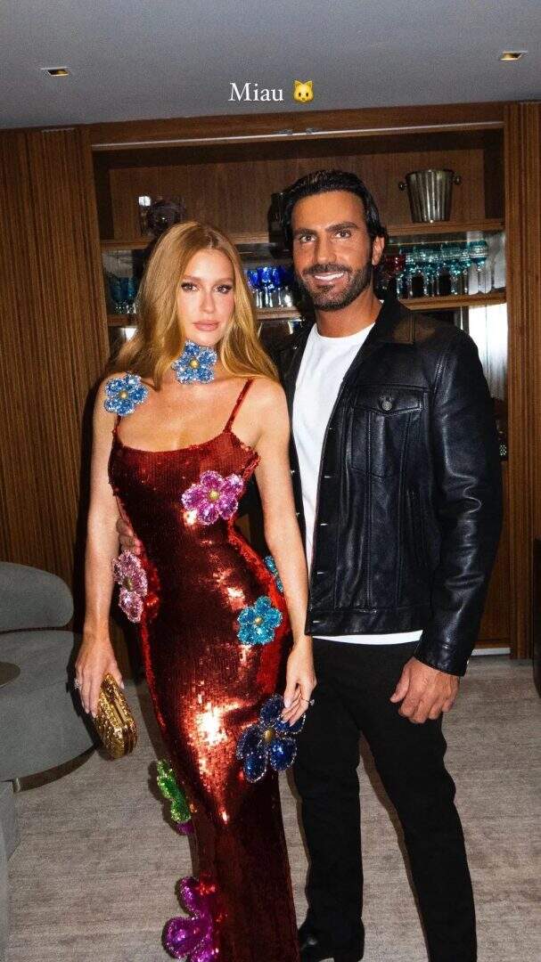 Marina Ruy Barbosa compartilhou em suas redes sociais um clique raro ao lado de seu noivo, Abdul Fares, na festa de aniversário de 50 anos de Angélica. A atriz, de 28 anos, e o empresário, de 40, posaram coladinhos para a foto. “Miau [emoji de gatinho]”, escreveu ela na legenda do post.