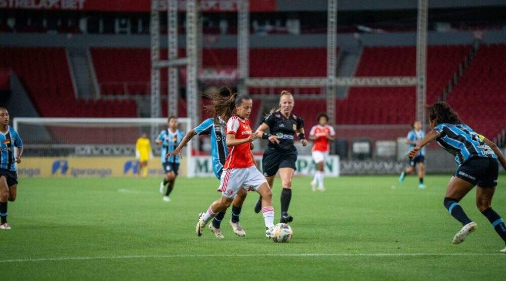 As Gurias Gremistas largaram na frente na disputa pelo título do Gauchão Feminino, na noite de segunda-feira (18). No estádio Beira-Rio, o Grêmio derrotou o Inter por 2 a 0.