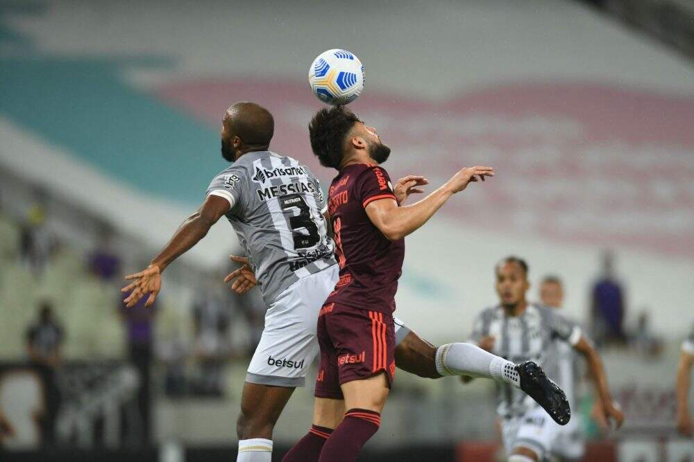 Simpático à bola área ofensiva, explorada principalmente por Cléber, mas também, em lances de bola parada, por Messias e Luiz Otávio, o Ceará assustou pela vez primeira aos 19. Servido por Marlon, Vina finalizou rasteiro, e Daniel salvou. Depois, novos escanteios alvinegros voltaram a assustar o time de Aguirre, mas insuficientes para alterar o placar, que seguiu zerado até o intervalo de confronto. Boa parte da igualdade, vale lembrar, também encontrou justificativa no acidentado gramado do Castelão, que muito prejudicava a troca de passes de ambas as equipes.