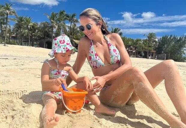Foto: Reprodução/InstagramTiciane Pinheiro está curtindo as férias em família no Ceará. A apresentadora publicou fotos nesta terça-feira (28) ao lado da filha, Manuella, em que as duas se divertem na areia da praia. Na imagem, elas usam biquínis com estampas iguais.