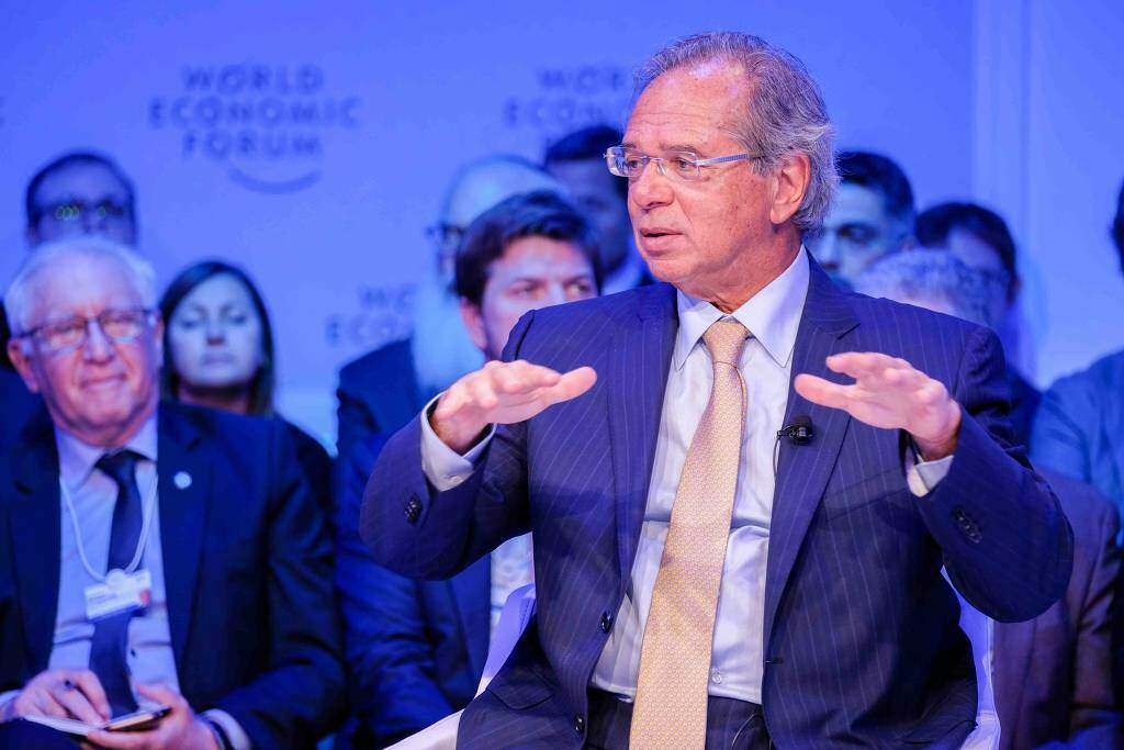 Brasil No Fórum Econômico Mundial, em Davos, o ministro da Economia do Brasil negocia acordos comerciais e tributários