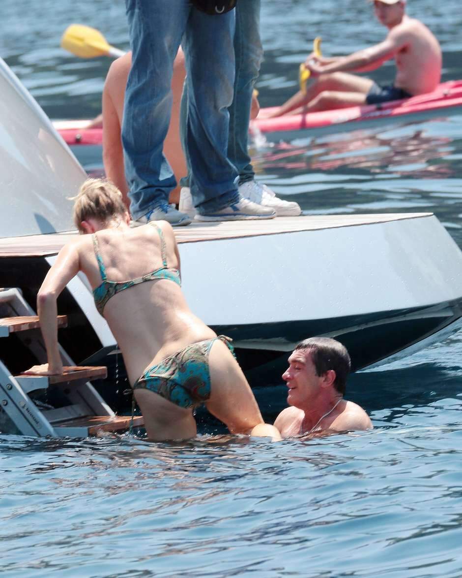 No maior clima de romance, o casal trocou beijos, abraços e mergulhou no mar italiano. Nicole e Banderas foram vistos juntos pela primeira vez em maio, durante o Festival de Cannes. Melanie e o ator se divorciaram em junho de 2014.