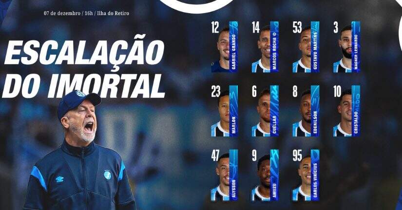 O Grêmio vem de derrota em casa para o Fluminense por 2 a 1. Na 11ª posição, com 46 pontos, o time de Mano Menezes garante classificação para a Sul-Americana se vencer o Sport. Em caso de empate ou derrota, fica de olho em resultados paralelos.