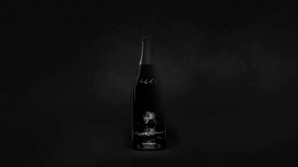 A fotografia de um leopardo, feita por Sebastião Salgado num dos rios da Namíbia, completa o rótulo do champagne da 14ª edição da Taittinger Collection. O categorizado produto da França costuma convocar artistas de nome internacional na elaboração dos rótulos, como já fizeram anteriormente o húngaro Vasarely, André Masson, mestre do surrealismo francês, e o americano Robert Rauschenberg, entre outros.