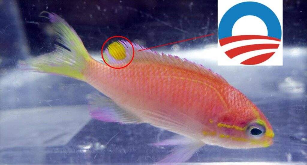 Um dos autores do artigo que classificou formalmente o Tosanoides obama como uma nova espécie de peixe destacou que os machos dessa espécie têm uma pequena marca amarela arredondada nas costas, cercada de áreas azuis. Para Richard Pyle, o desenho natural lembraria o logo da campanha presidencial de Obama – mas a comparação força um pouco a barra.