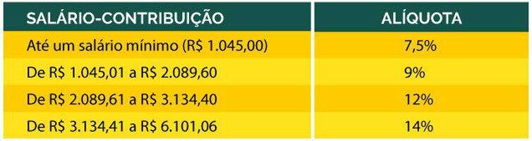 Alíquota de contribuição da Previdência Social. Fonte: Secretaria de Previdência