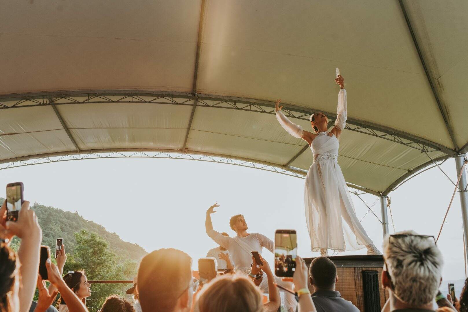 Um dos momentos que conquistou o Brasil, tornando o Olivas Sunset um sucesso, é o Ritual do Pôr do Sol na Montanha Mágica. A cada fim de tarde, a conexão entre Djs, músicos e público na reverência ao Astro Rei é um show à parte arte.