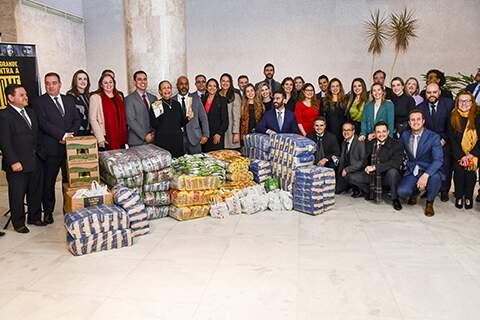 Foto: Márcio Daudt/TJ-RSOs 92 novos juízes substitutos do TJ-RS (Tribunal de Justiça do Rio Grande do Sul) entregaram alimentos não perecíveis ao Movimento Rio Grande Contra a Fome, que conta com a participação dos demais Poderes do Estado.