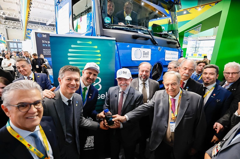 À imprensa, o presidente voltou a afirmar que o biodiesel é uma “opção barata, confiável e eficiente para descarbonizar o setor de transporte” e que o Brasil “é capaz de produzir sem comprometer a produção de alimentos e áreas de florestas”.