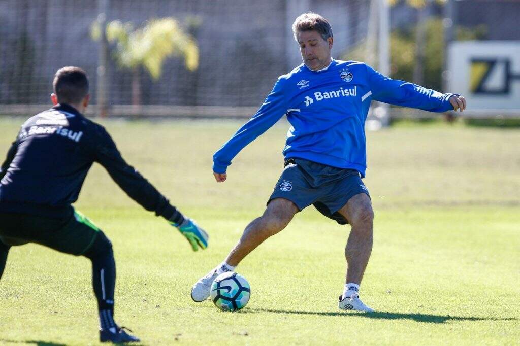 A atividade iniciada às 9h30min desse domingo deu sequência aos preparativos de sábado. O técnico Renato Portaluppi focou o trabalho no aspecto tático e nas cobranças de faltas e escanteios. Em alguns momentos, ele próprio valeu-se de sua experiência como jogador (1982-1999) e participou de lances com bola, a fim de passar instruções ao elenco.