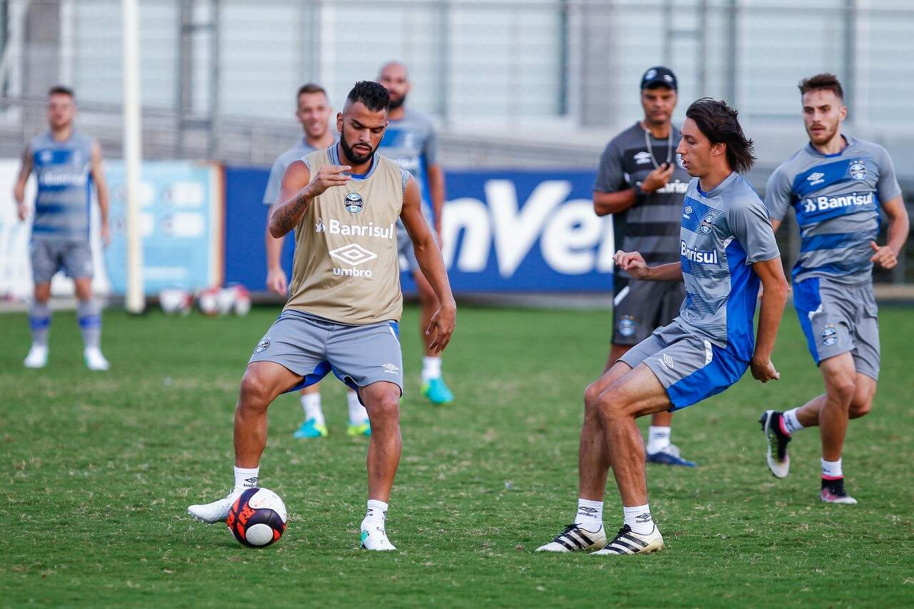 Desfalcado do atacante Everton, o Grêmio do técnico Renato Portaluppi colocou em campo um time formado por Marcelo Grohe, Léo Moura, Pedro Geromel, Kannemann, Marcelo Oliveira, Maicon, Cícero, Ramiro, Luan (Douglas), Pepê (Marinho) e André (Jael).