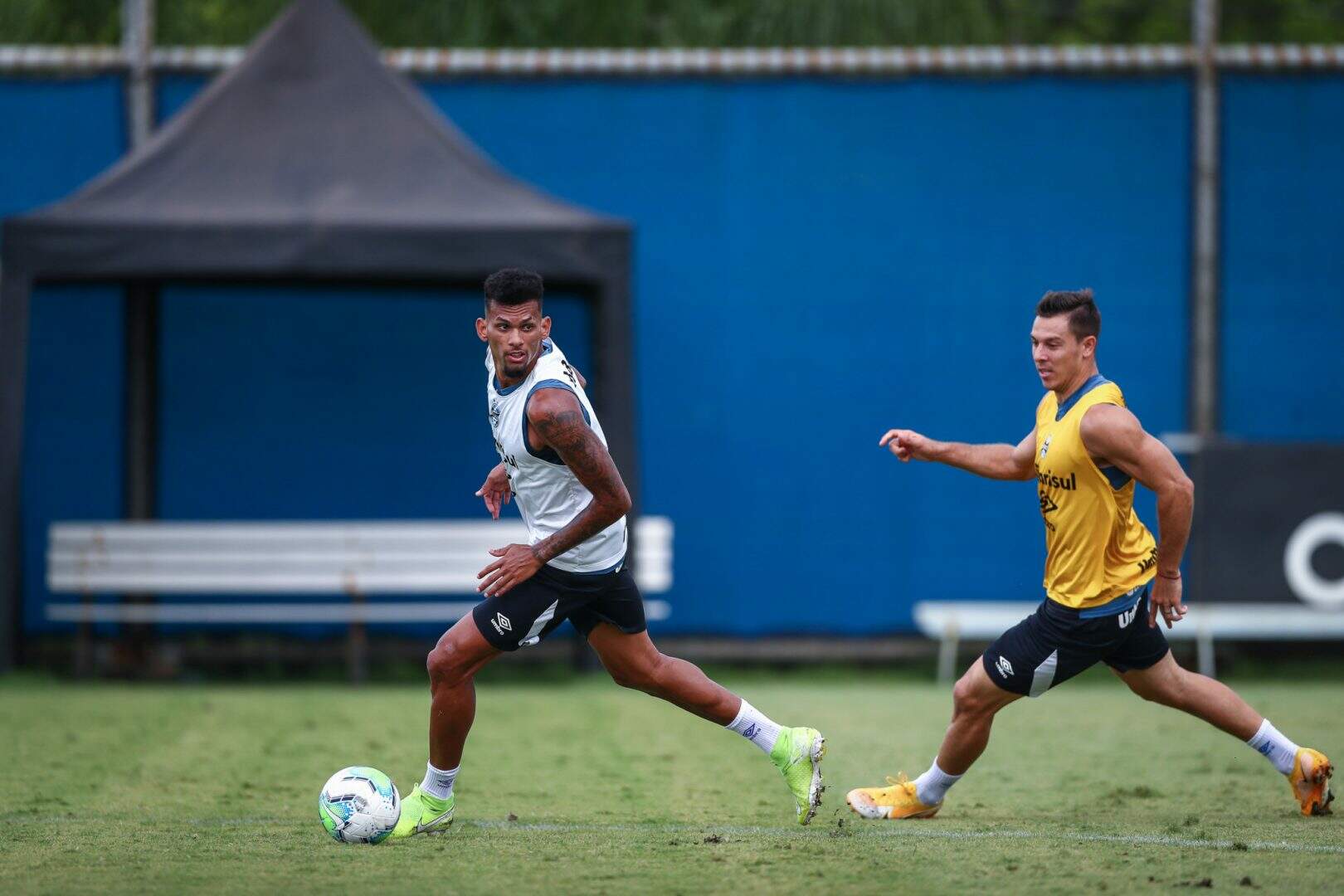 Na sexta (12), com uma atividade em campo inteiro, a comissão gremista, comandada pelo técnico Renato Portaluppi, trabalhou aspectos do modelo de jogo em uma sessão com três times. A definição do elenco será neste sábado, e Victor Ferraz e Diego Souza estão à disposição.