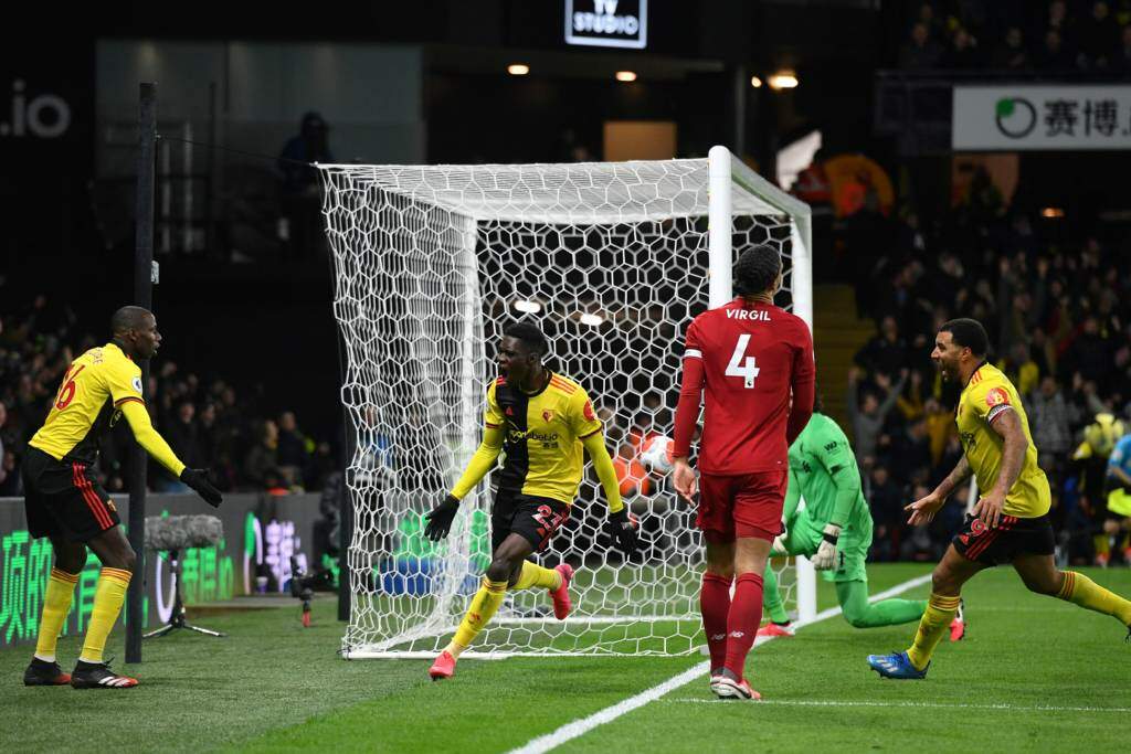 Aos oito minutos do segundo tempo, porém, o zero saiu do marcador. Após lateral pela esquerda, Deeney prendeu a marcação de Lovren, a zaga do Liverpool titubeou na área e Doucouré cruzou para Sarr. O camisa 23 completou quase em cima da linha e colocou os donos da casa na frente.