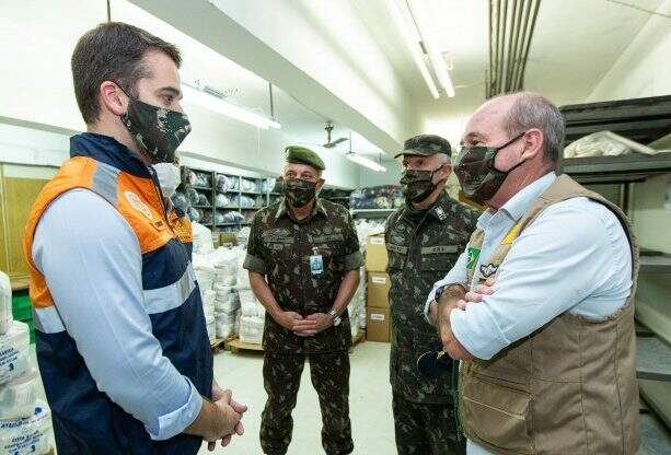Ao lado do governador Eduardo Leite, ele esteve na Central de Doações do Estado, onde o lote foi carregado. O titular da pasta estava na capital gaúcha para verificar as atividades do chamado “Comando Conjunto do Sul”, formado por equipes do Exército, Marinha e Aeronáutica que atuam em operações de combate à pandemia. Também presente na ocasião, o chefe do CMS (Comando Militar do Sul, antigo 3º Exército), general Geraldo Antonio Miotto.