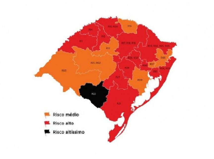 De acordo com o governo gaúcho, o risco altíssimo que voltou a ser atribuído a uma área gaúcha é resultado da combinação entre uma piora na taxa de ocupação de leitos por pacientes com Covid-19 e o fato de a região apresentar bandeira preta no indicador de hospitalizações para cada 100 mil habitantes.