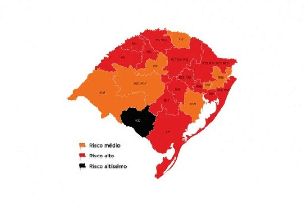 De acordo com o governo gaúcho, o risco altíssimo que voltou a ser atribuído a uma área gaúcha é resultado da combinação entre uma piora na taxa de ocupação de leitos por pacientes com Covid-19 e o fato de a região apresentar bandeira preta no indicador de hospitalizações para cada 100 mil habitantes.