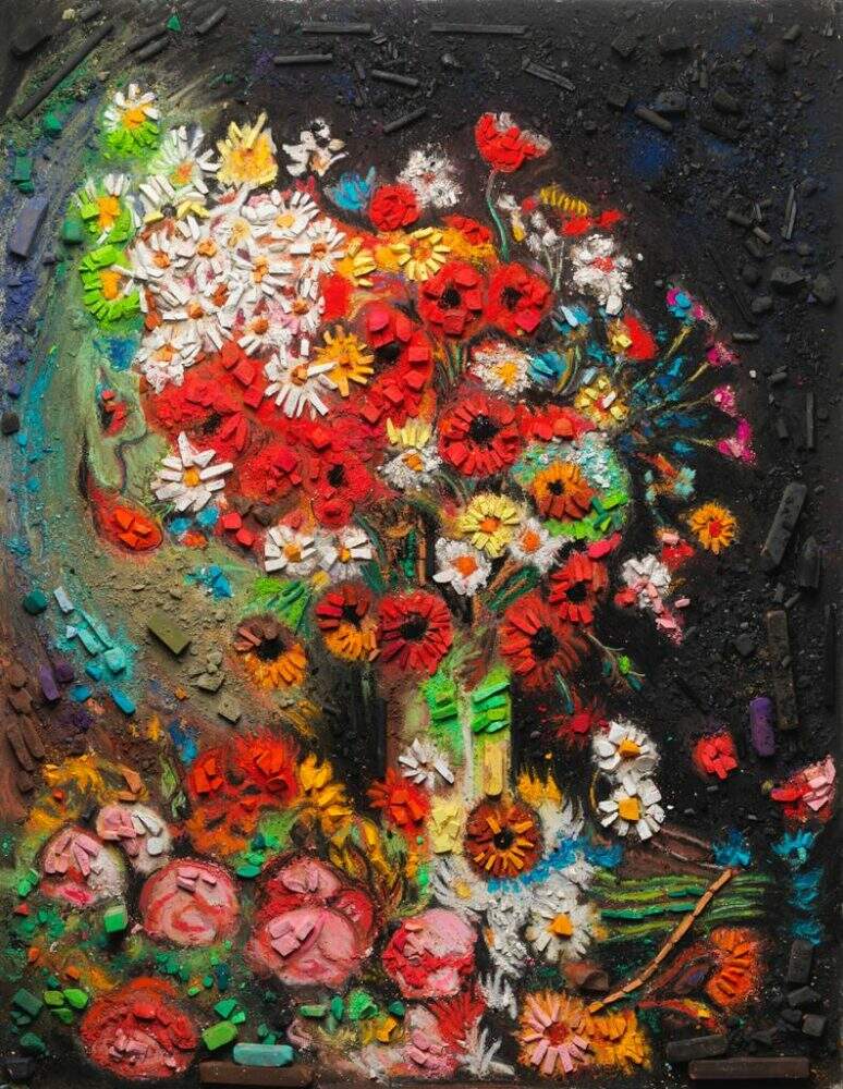 Depois do grande movimento de importantes nomes gaúchos do mundo das artes, que se uniram para apoiar o primeiro leilão virtual da Fundação Iberê, artistas, colecionadores e galerias de fora do Estado aderiram ao evento, que ocorre nos dias 9 e 10 de setembro, às 19h, pelo site www.santayana.com.br. Artur Lescher (SP) doou peça única – sem título – de seu acervo, bem como Vik Muniz (RJ), que escolheu “Flowers after Van Gogh”, de 131,1 cm x 101,6 cm.