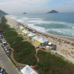 Os melhores surfistas do mundo competiram nas praias da Barra da Tijuca e em Grumari entre os dias 10 e 21 de maio, no Oi Rio Pro, quarta das 11 etapas do Samsung Galaxy World Surf League. Num dia atípico no Rio com frio e chuva, o surfista havaiano da nova geração John John Florence (23), com uma atuação muito inspirada durante todo o campeonato, mostrou todo seu repertório de manobras com floaters e aéreos, levando a galera ao delírio ao vencer a final do Oi Rio Pro, sendo bicampeão da etapa carioca (venceu em 2012), encerrada nesta quinta-feira, no Postinho da Barra. O havaiano, agora 3º colocado no ranking, recebeu o troféu das mãos do presidente da Oi, Bayard Gontijo.