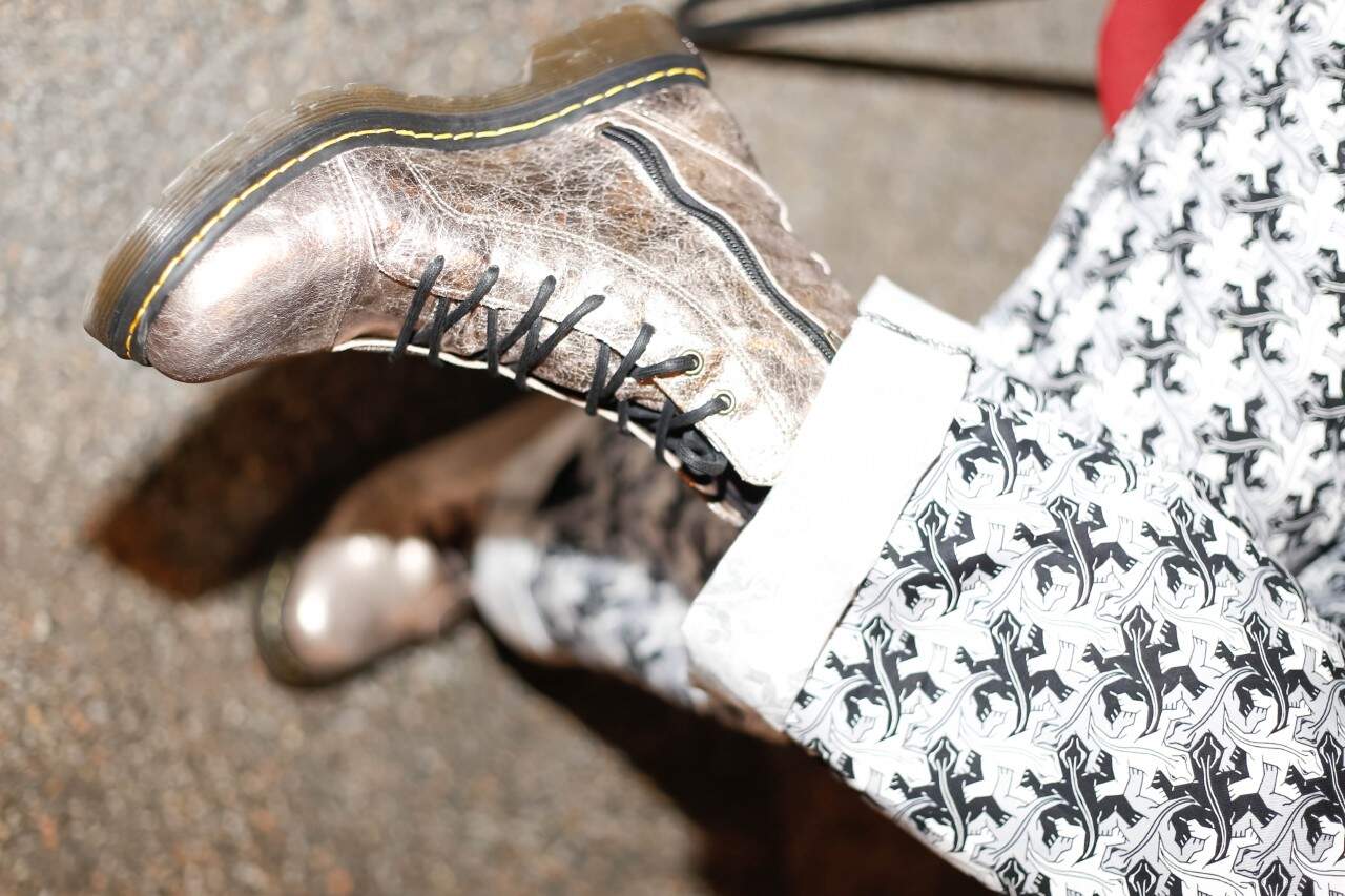 Incrível conjunto de originalidade e bom gosto: calça e sapato de Graça Craidy. (Foto: Lenara Petenuzzo/especial)