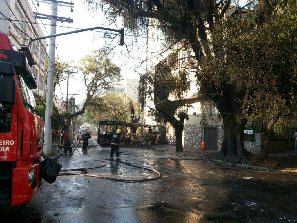Um ônibus da linha 436-Jardim Ipê colidiu contra um prédio nas esquinas das ruas Felipe de Oliveira com Eça de Queiroz, no bairro Petrópolis em Porto Alegre. Com a colisão houve vazamento de combustível. O ônibus e três carros pegaram fogo. Houve bloqueio no local. Um desvio foi feito pela rua Corte Real por agentes da EPTC.