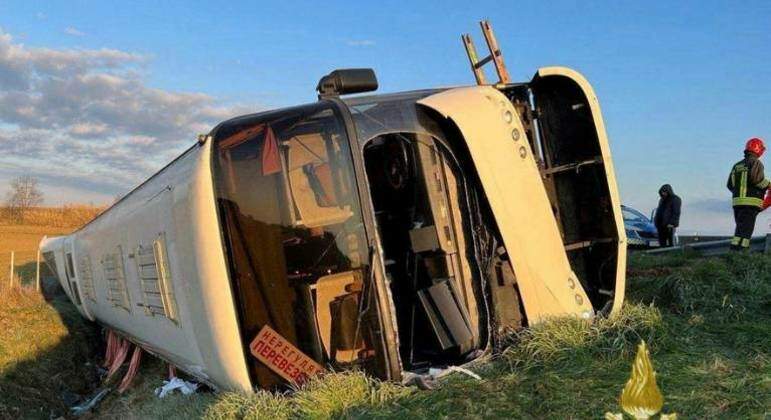 Foto: ReproduçãoUm ônibus que transportava cerca de 50 ucranianos saiu da estrada na Itália e capotou, deixando um morto e vários feridos, disseram bombeiros neste domingo (13).