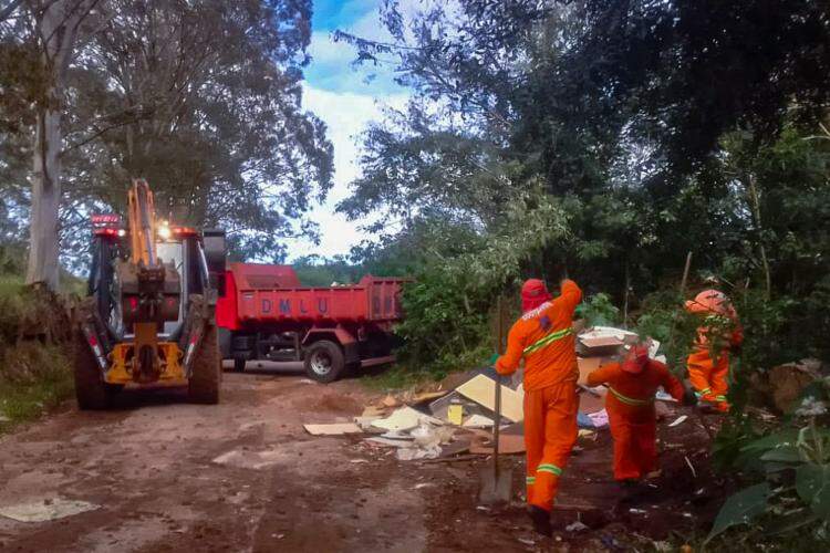 A limpeza foi feita por uma equipe composta por seis garis e três fiscais do DMLU, com o auxílio de um caminhão coletor, uma retroescavadeira e duas caçambas.
