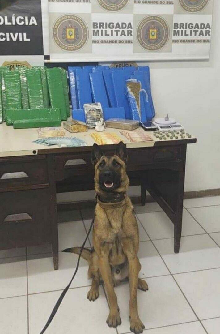Os cães policiais, Rex e Frida apoiaram a ação. Os animais rapidamente apontaram os locais onde estavam armazenados os entorpecentes. No total, foram apreendidos quase 23 quilos de maconha, aproximadamente dois quilos de crack, cerca de um quilo e meio de cocaína, duas balanças de precisão, três aparelhos celulares.