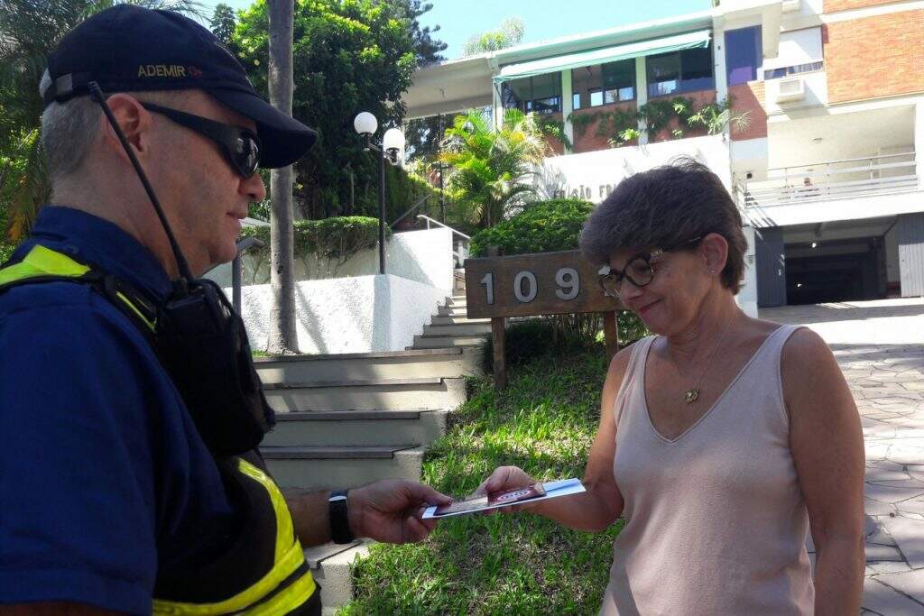 Agentes de fiscalização da EPTC reforçam, com a entrega de folders educativos, as atitudes de condutores flagrados pelo Radar Móvel dentro dos limites da velocidade permitida na via.