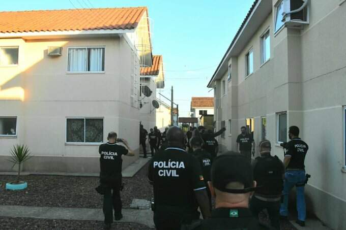 Foto: Polícia Civil/TwitterA Polícia Civil deflagrou, na manhã desta quarta-feira (16), a Operação Consórcio no combate a homicídios em Alvorada, na Região Metropolitana de Porto Alegre. Trata-se de uma das maiores operações da história da Polícia Civil com 850 policiais.