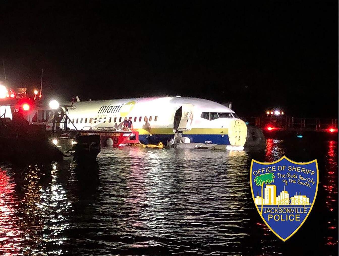Avião com 136 ocupantes desliza para dentro de rio na Flórida