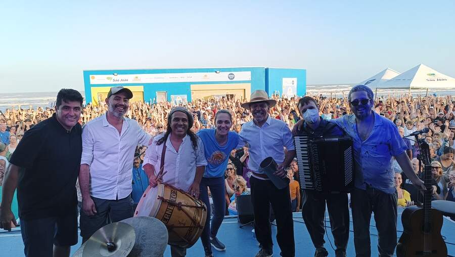 Pelo menos 1,5 mil pessoas estiveram na abertura oficial do Estação Verão Sesc 2024 e puderam conferir o pocket show da banda Os Fagundes, que cantou sucessos como “Eu sou do Sul”, “Céu, Sol, Sul” e, ainda, “Canto Alegretense”, com a participação de Bagre Fagundes. O evento de abertura do projeto, que comemora 20 anos de existência, ocorreu no final da tarde deste sábado (6), no calçadão de Tramandaí.